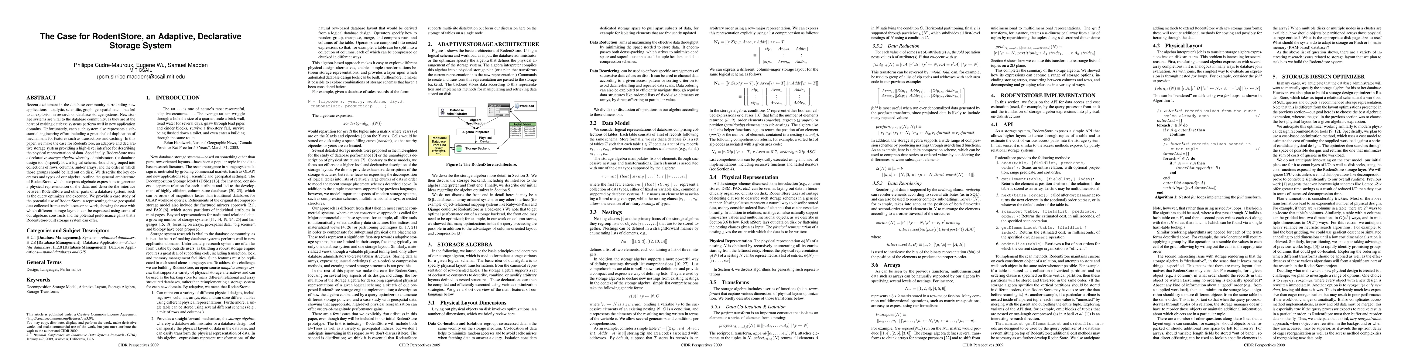 RodentStore is a new adaptive storage system that simplifies database design and improves performance for applications like geospatial data from mobile sensor networks.