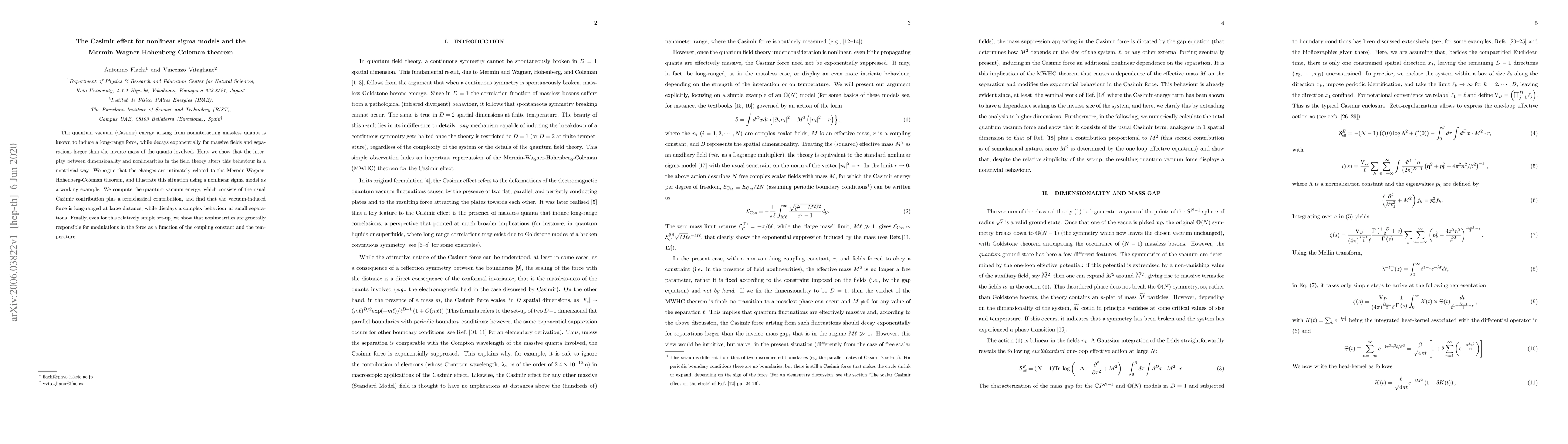 The quantum vacuum (Casimir) energy arising from noninteracting massless quanta is known to induce a long-range force, while decays exponentially for massive fields and separations larger than the inverse mass of the quanta involved. Here, we show that the interplay between dimensionality and nonlinearities in the field theory alters this behaviour in a nontrivial way. We argue that the changes are intimately related to the Mermin-Wagner-Hohenberg-Coleman theorem, and illustrate this situation using a nonlinear sigma model as a working example. We compute the quantum vacuum energy, which consists of the usual Casimir contribution plus a semiclassical contribution, and find that the vacuum-induced force is long-ranged at large distance, while displays a complex behaviour at small separations. Finally, even for this relatively simple set-up, we show that nonlinearities are generally responsible for modulations in the force as a function of the coupling constant and the temperature.