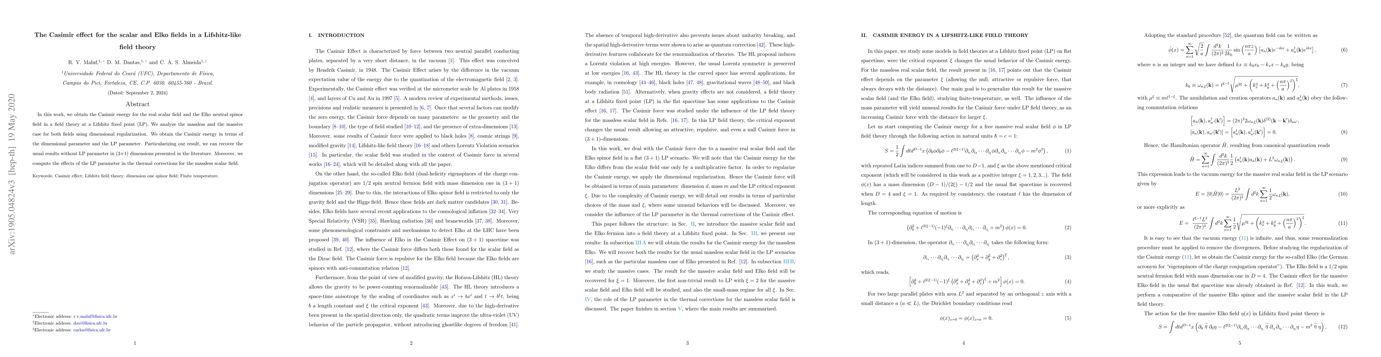 This paper calculates the Casimir effect for two types of fields in a field theory at a Lifshitz fixed point, recovering known results when the LP parameter is absent.