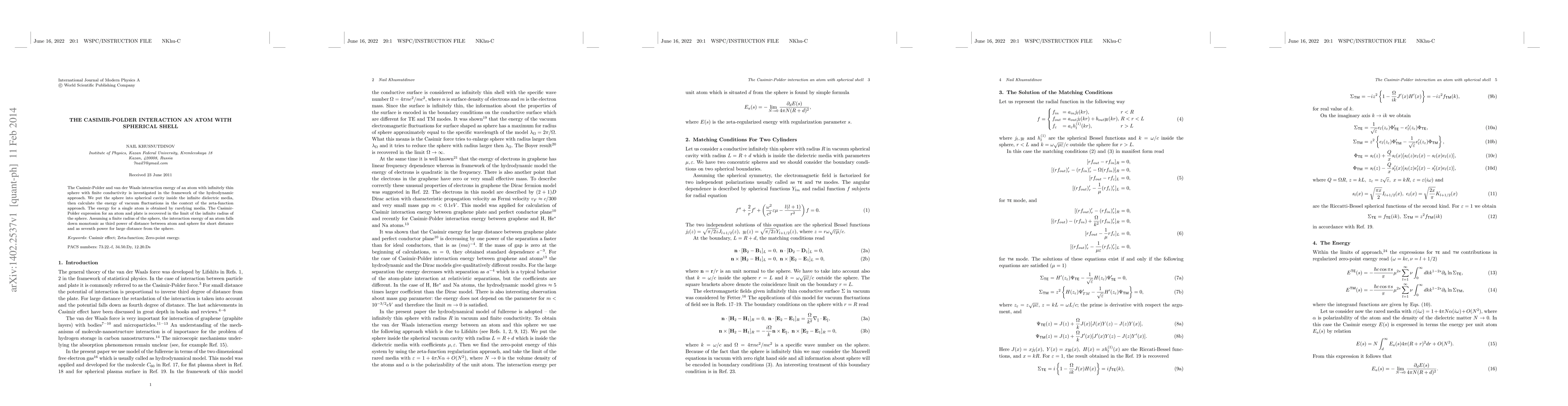 The paper presents analytical expressions for the Casimir-Polder interaction energy between an atom and a spherical shell with finite conductivity, extending previous work on atom-plate interactions to more complex geometries.