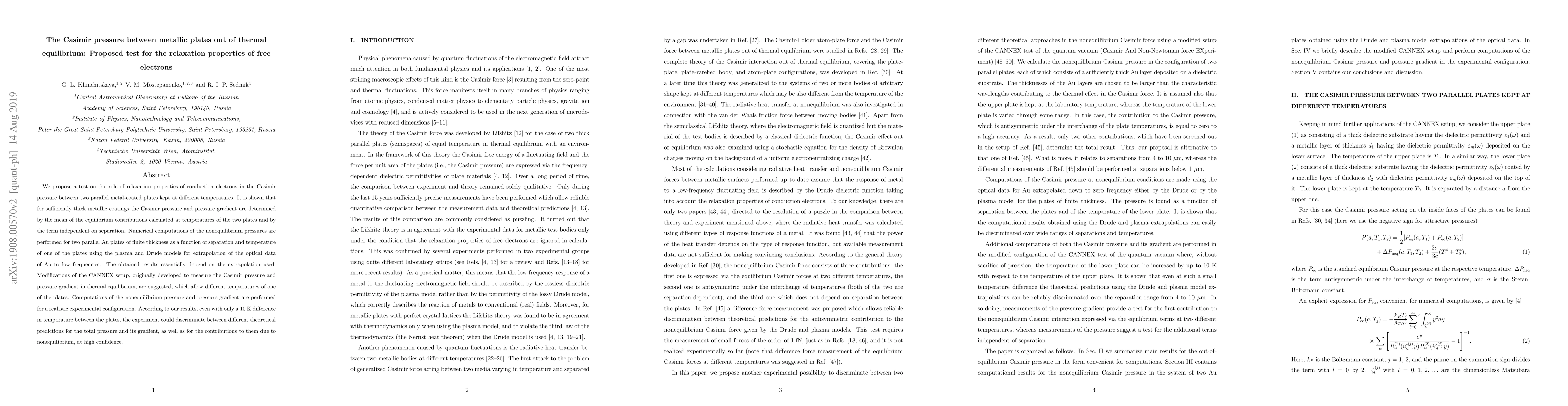 This paper proposes a test to investigate how the relaxation properties of free electrons affect the Casimir pressure between two metallic plates at different temperatures. The study suggests that modifications to the CANNEX setup could enable such experiments, and computations show that even small temperature differences could help distinguish between various theoretical predictions.