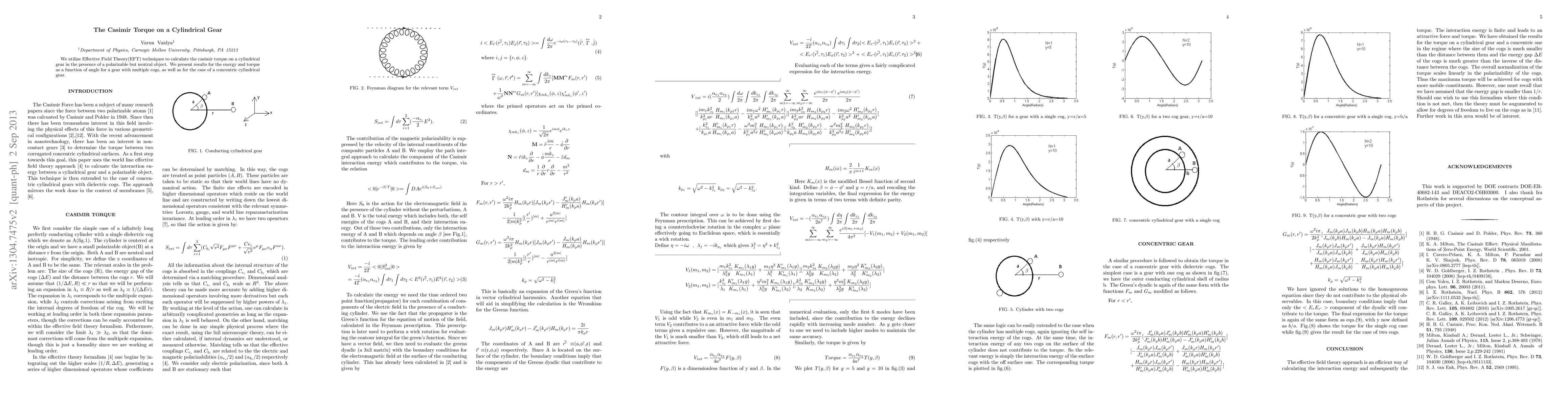 We utilize Effective Field Theory(EFT) techniques to calculate the casimir torque on a cylindrical gear in the presence of a polarizable but neutral object. We present results for the energy and torque as a function of angle for a gear with multiple cogs, as well as for the case of a concentric cylindrical gear.