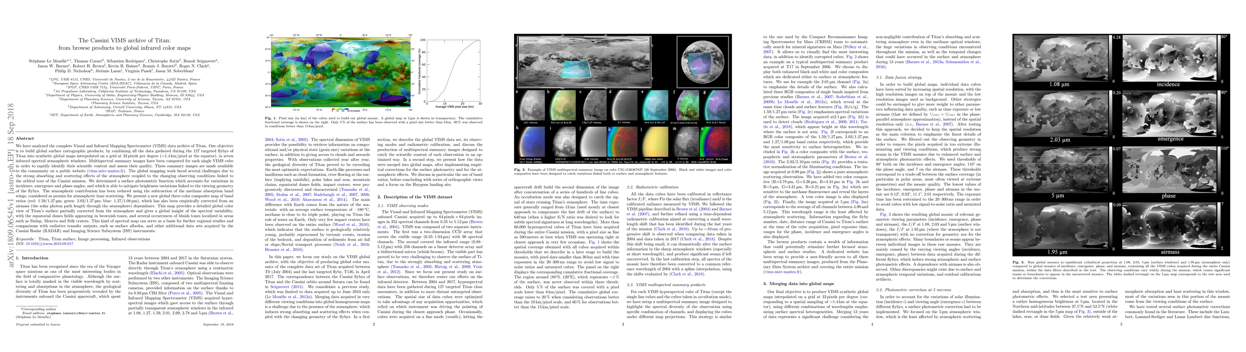 This paper analyzes the complete Cassini VIMS data archive of Titan to create global infrared color maps, combining data from 127 flybys into synthetic maps. The study addresses atmospheric effects and viewing geometry challenges to produce a detailed, three-color composite map that offers a corrected view of Titan's surface spectral variability.