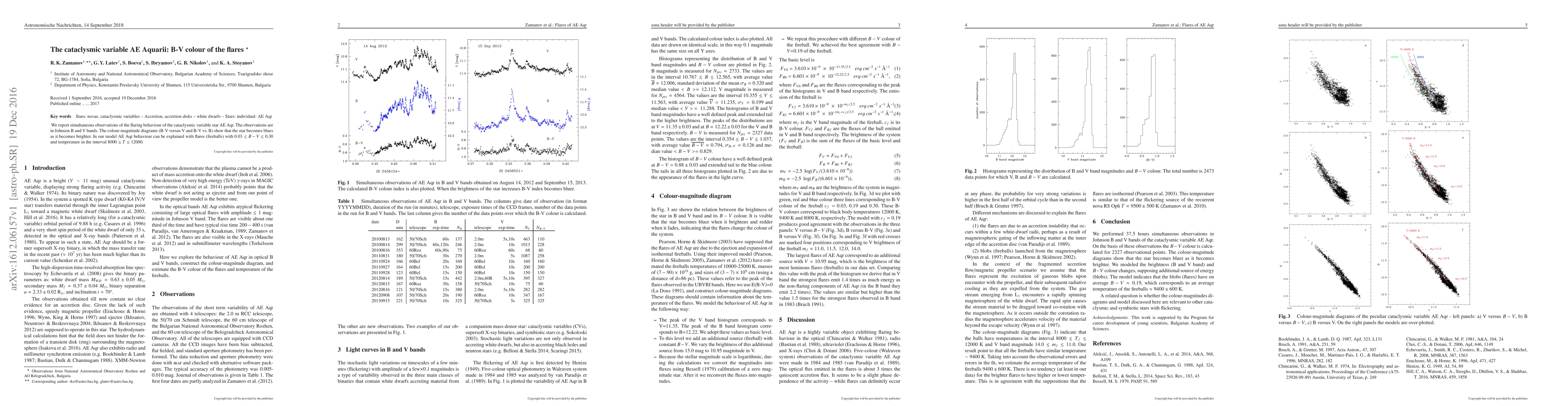 We report simultaneous observations of the flaring behaviour of the cataclysmic variable star AE Aqr. The observations are in Johnson B and V bands. The colour-magnitude diagrams (B-V versus V and B-V vs. B) show that the star becomes blues as it becomes brighter. In our model AE Aqr behaviour can be explained with flares (fireballs) with 0.03 < B-V < 0.30 and temperature in the interval 8000 < T < 12000.