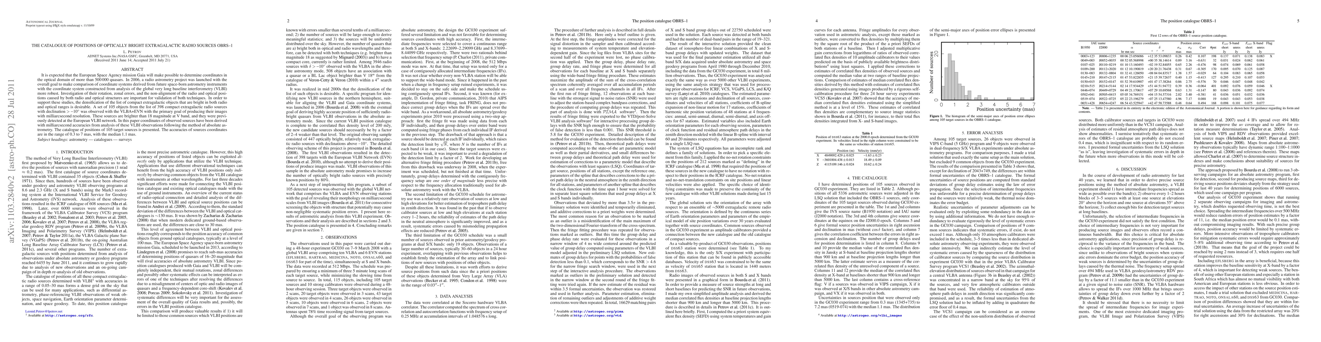 It is expected that the European Space Agency mission Gaia will make possible to determine coordinates in the optical domain of more than 500000 quasars. In 2006, a radio astrometry project was launched with the overall goal to make comparison of coordinate systems derived from future space-born astrometry instruments with the coordinate system constructed from analysis of the global very long baseline interferometry (VLBI) more robust. Investigation of their rotation, zonal errors, and the non-alignment of the radio and optical positions caused by both radio and optical structures are important for validation of both techniques. In order to support these studies, the densification of the list of compact extragalactic objects that are bright in both radio and optical ranges is desirable. A set of 105 objects from the list of 398 compact extragalactic radio sources with declination > -10 deg was observed with the VLBA+EVN with the primary goal of producing their images with milliarcsecond resolution. These sources are brighter than 18 magnitude at V band, and they were previously detected at the European VLBI network. In this paper coordinates of observed sources have been derived with milliarcsecond accuracies from analysis of these VLBI observations following the method of absolute astrometry. The catalogue of positions of 105 target sources is presented. The accuracies of sources coordinates are in the range of 0.3 to 7 mas, with the median 1.1 mas.