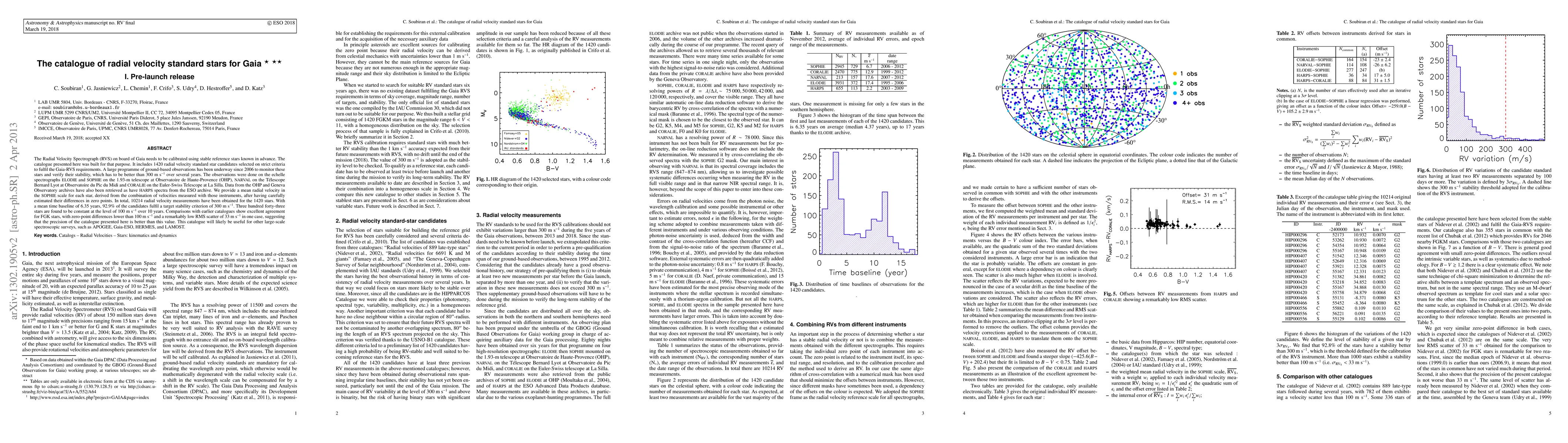 This paper presents a catalogue of 1420 radial velocity standard stars for calibrating the Gaia RVS instrument, with 10,214 measurements ensuring stability better than 300 m/s over 6.35 years. The catalogue's precision is comparable to existing catalogs, making it valuable for future spectroscopic surveys.
