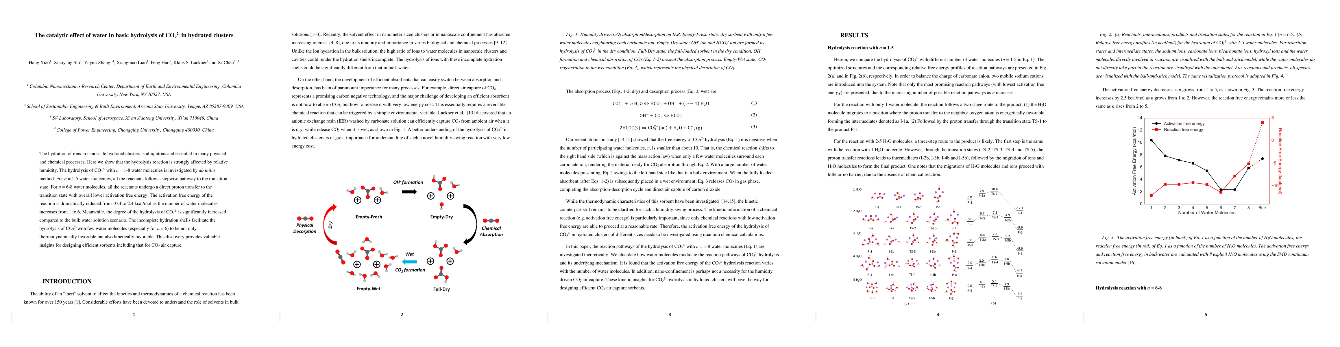 Researchers found that adding more water molecules to a hydrated cluster accelerates the hydrolysis of CO32- ions, making it more thermodynamically and kinetically favorable, with activation energy reduced from 10.4 to 2.4 kcal/mol.