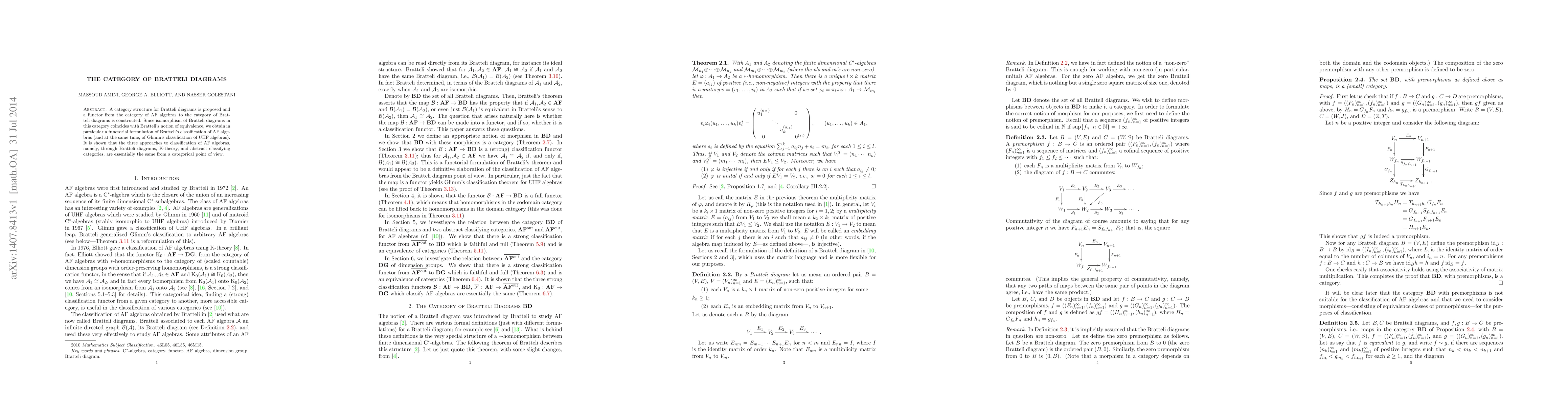 This paper proposes a category structure for Bratteli diagrams and constructs a functor linking AF algebras to these diagrams, providing a categorical framework for Bratteli's classification of AF algebras. It demonstrates the equivalence of different classification methods for AF algebras through this new categorical perspective.