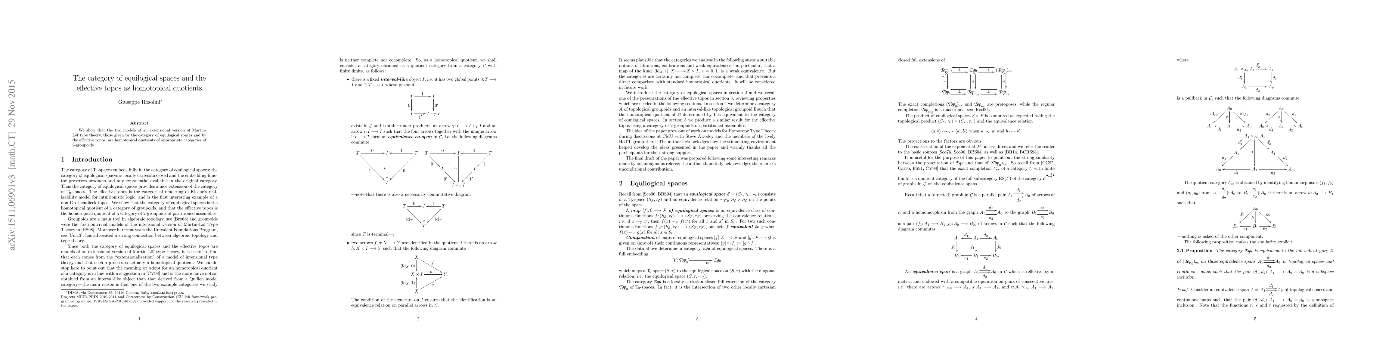 We show that the two models of extensional type theory, those given by the category of equilogical spaces and by the effective topos, are homotopical quotients of categories of 2-groupoids.