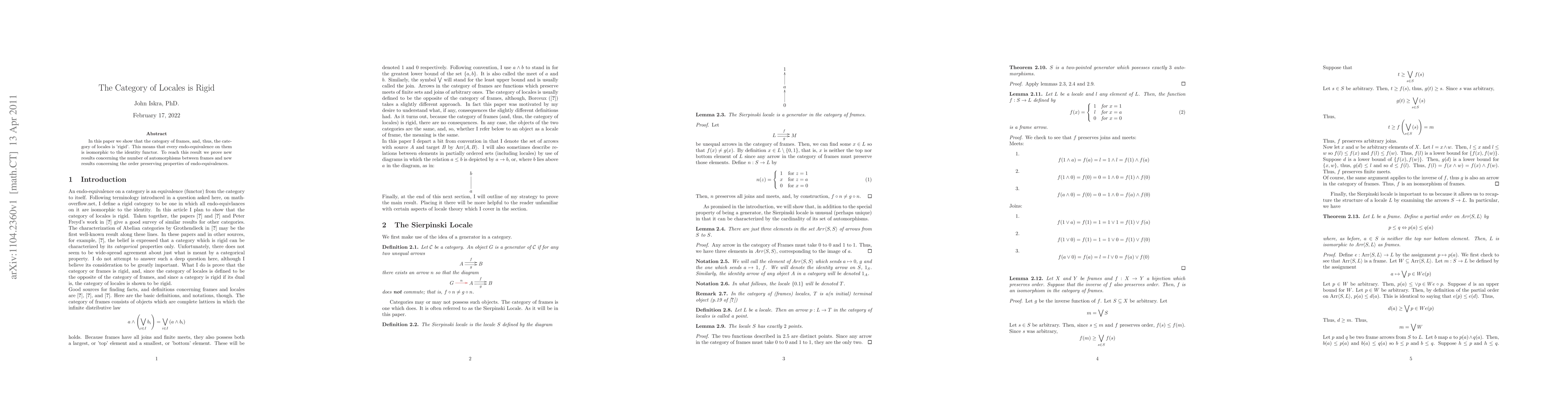 In this paper we show that the category of frames, and, thus, the cate- gory of locales is 'rigid'. This means that every endo-equivalence on them is isomorphic to the identity functor. To reach this result we prove new results concerning the number of automorphisms between frames and new results concerning the order preserving properties of endo-equivalences.