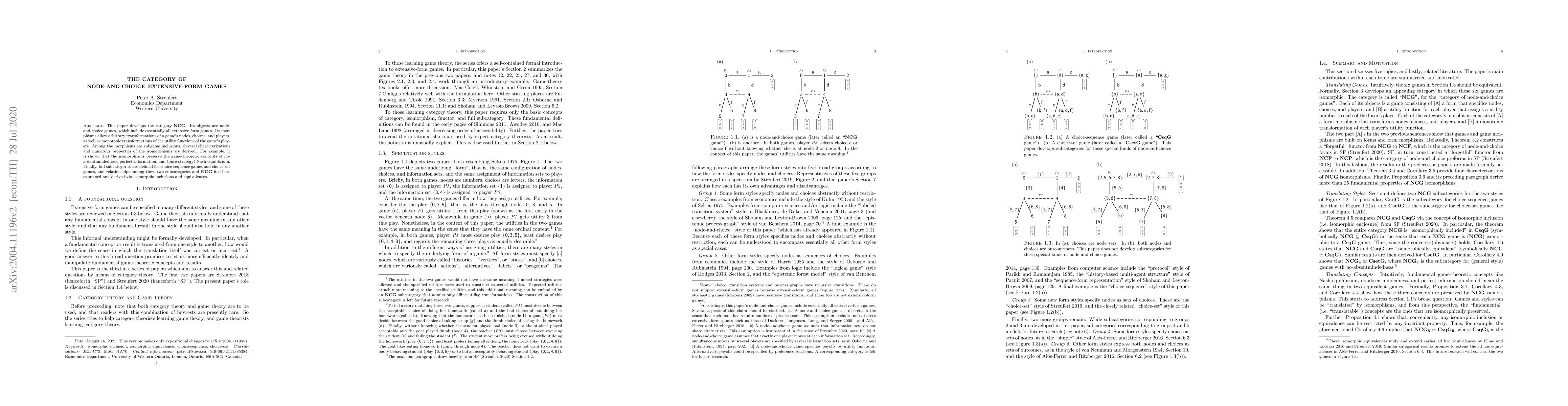 Researchers develop a new category called NCG that encompasses node-and-choice extensive-form games, allowing for transformations of game elements and utility functions, and derive properties and characterizations of isomorphisms.
