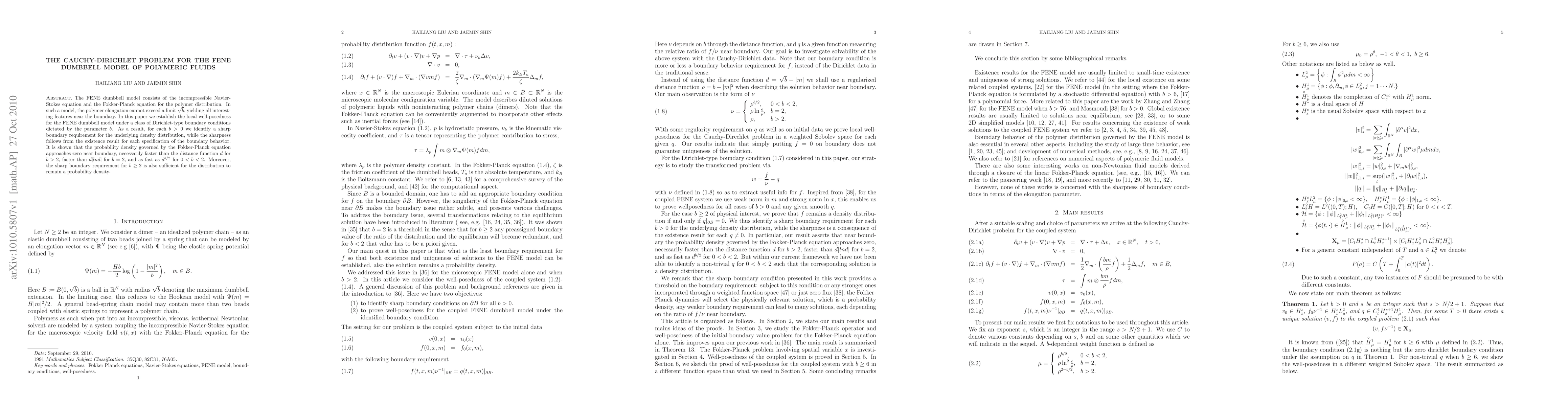This paper establishes local well-posedness for the FENE dumbbell model under Dirichlet-type boundary conditions, identifying sharp boundary requirements for the polymer density distribution. The probability density governed by the Fokker-Planck equation approaches zero near the boundary at specific rates depending on the parameter $b$.