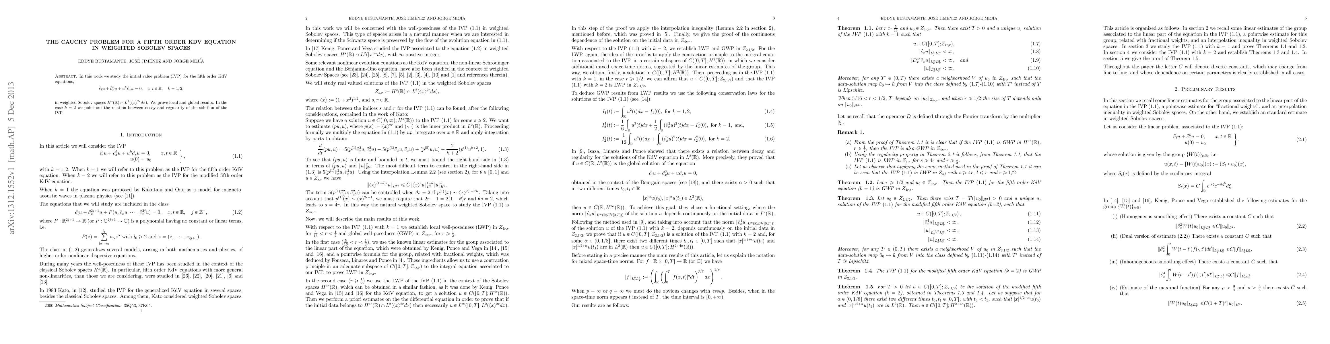 This paper investigates the initial value problem for a fifth-order KdV equation in weighted Sobolev spaces, proving both local and global existence results. Special attention is given to the case when the nonlinear term is quadratic, highlighting the connection between solution decay and regularity.