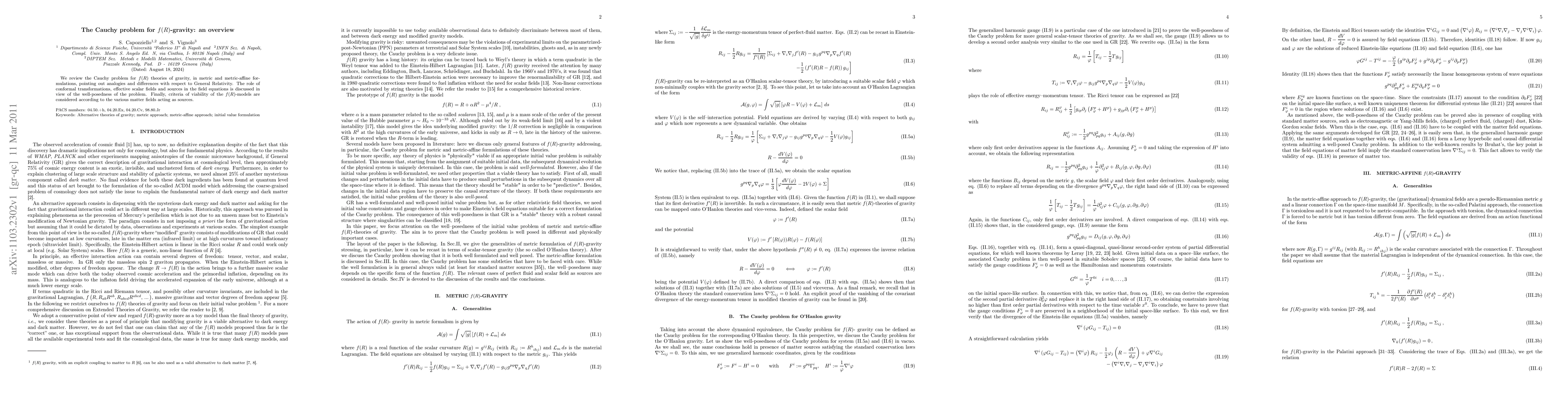 This paper reviews the Cauchy problem for f(R) gravity theories, comparing metric and metric-affine formulations to General Relativity, and discusses the role of conformal transformations and effective scalar fields in ensuring well-posedness, along with criteria for the viability of f(R) models based on different matter sources.