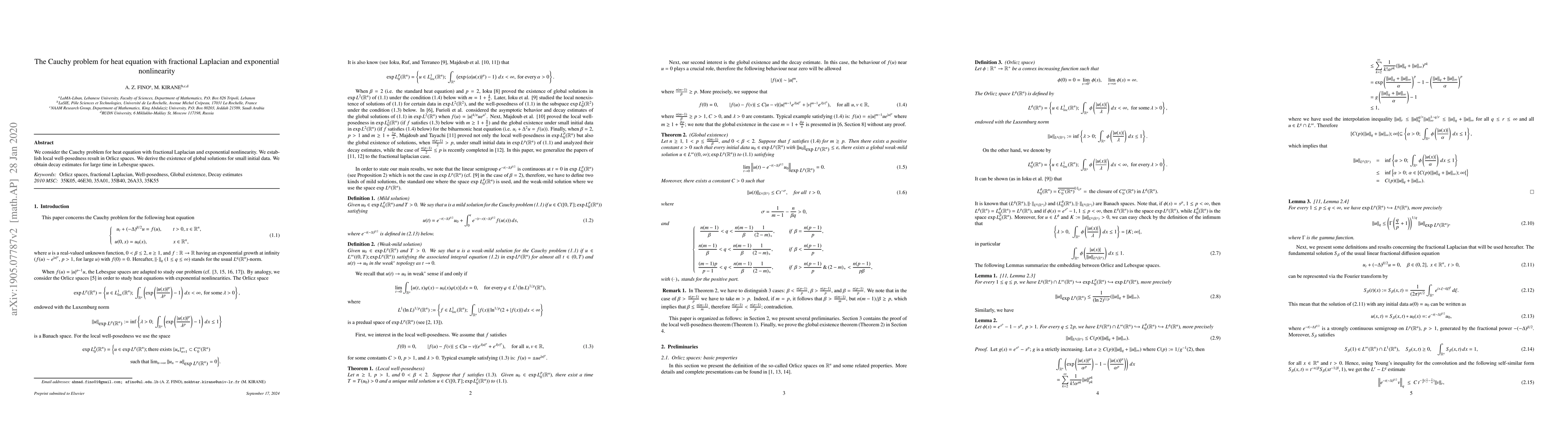 This paper investigates the Cauchy problem for a heat equation featuring a fractional Laplacian and exponential nonlinearity, establishing local well-posedness in Orlicz spaces, global solutions for small initial data, and decay estimates for large times in Lebesgue spaces.