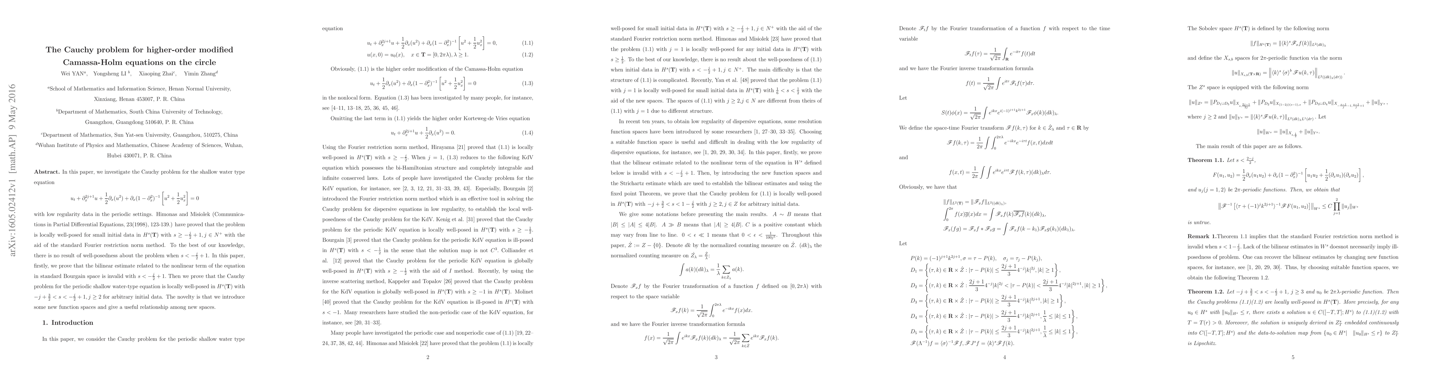 The paper investigates the Cauchy problem for a higher-order modified Camassa-Holm equation on the circle, proving local well-posedness in specific function spaces with initial data of low regularity.