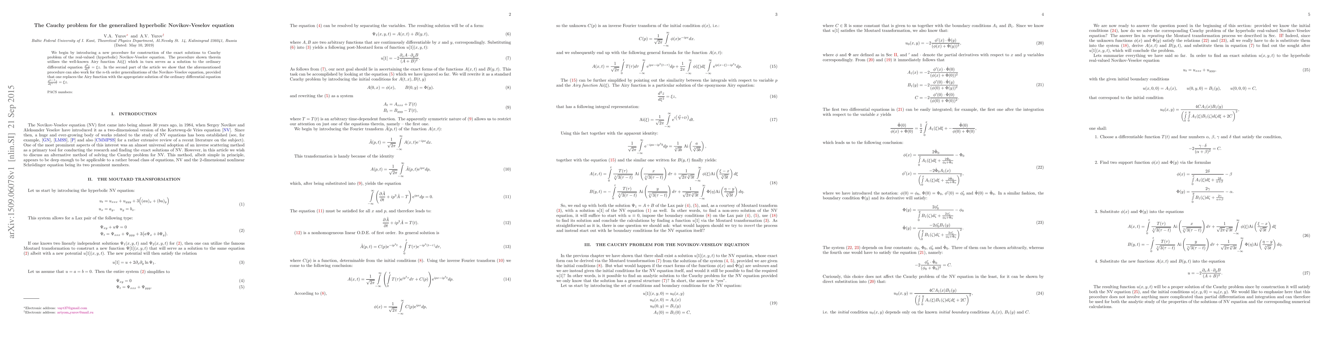Researchers developed a method to solve Cauchy problems for generalized hyperbolic Novikov-Veselov equations using Airy functions as solutions to related ordinary differential equations.