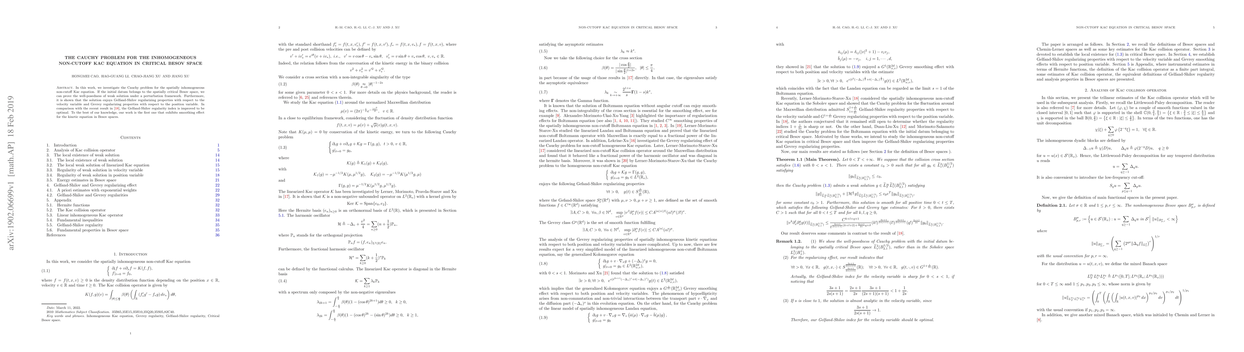 This paper investigates the Cauchy problem for the inhomogeneous non-cutoff Kac equation, proving well-posedness of weak solutions when initial data is in the critical Besov space. It demonstrates optimal Gelfand-Shilov and Gevrey regularizing properties, marking the first instance of such smoothing effects for kinetic equations in Besov spaces.