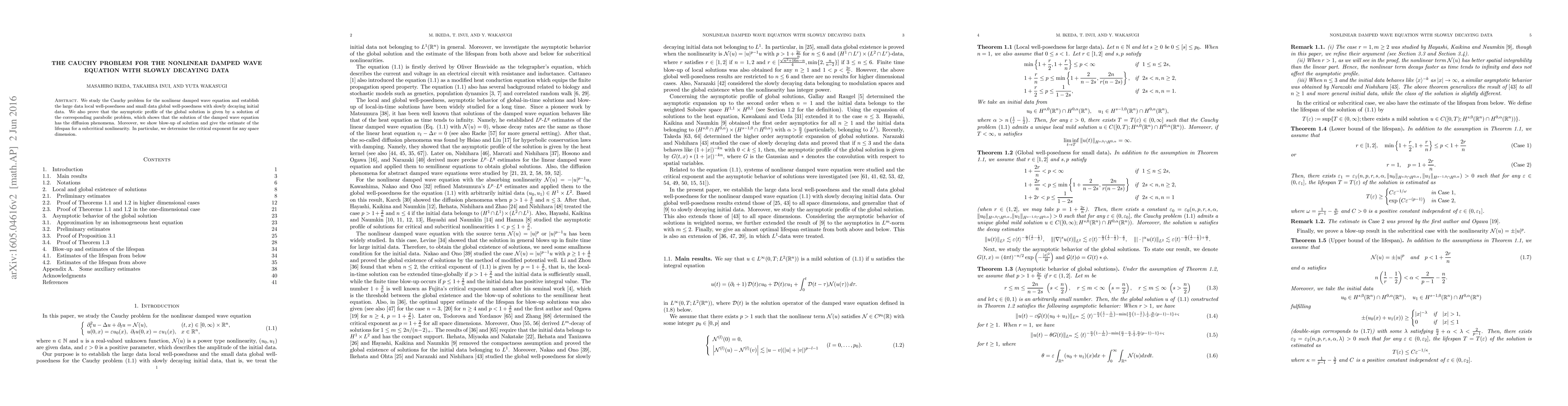 This paper investigates the Cauchy problem for the nonlinear damped wave equation, establishing local well-posedness for large data and global well-posedness for small data with slowly decaying initial conditions. It also demonstrates diffusion phenomena and provides estimates for solution lifespan and blow-up under subcritical nonlinearity, determining the critical exponent across various space dimensions.