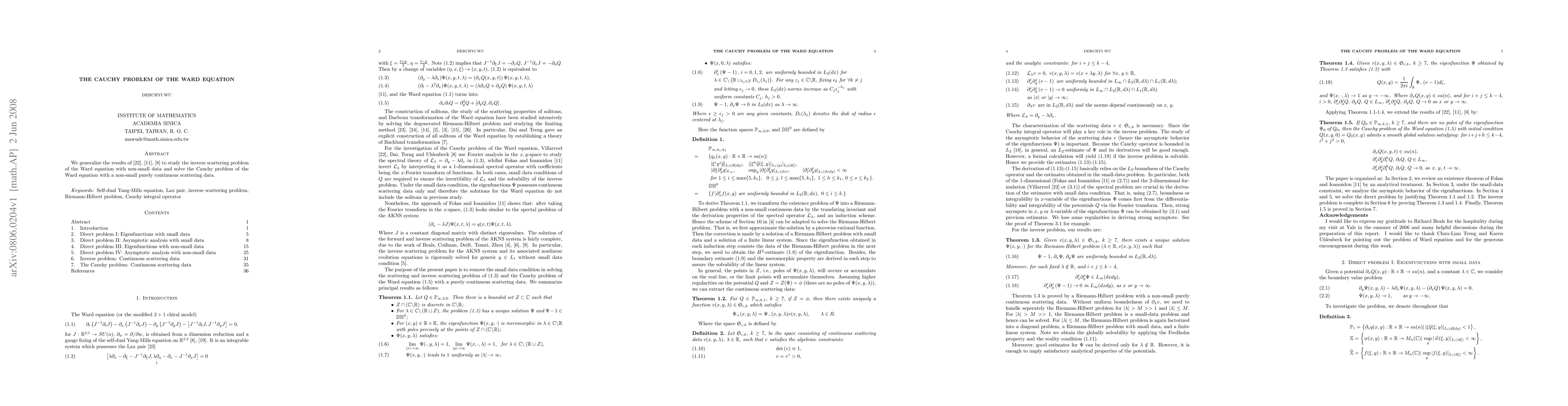 This paper generalizes previous results to solve the Cauchy problem of the Ward equation with non-small data, focusing on inverse scattering and purely continuous scattering data.