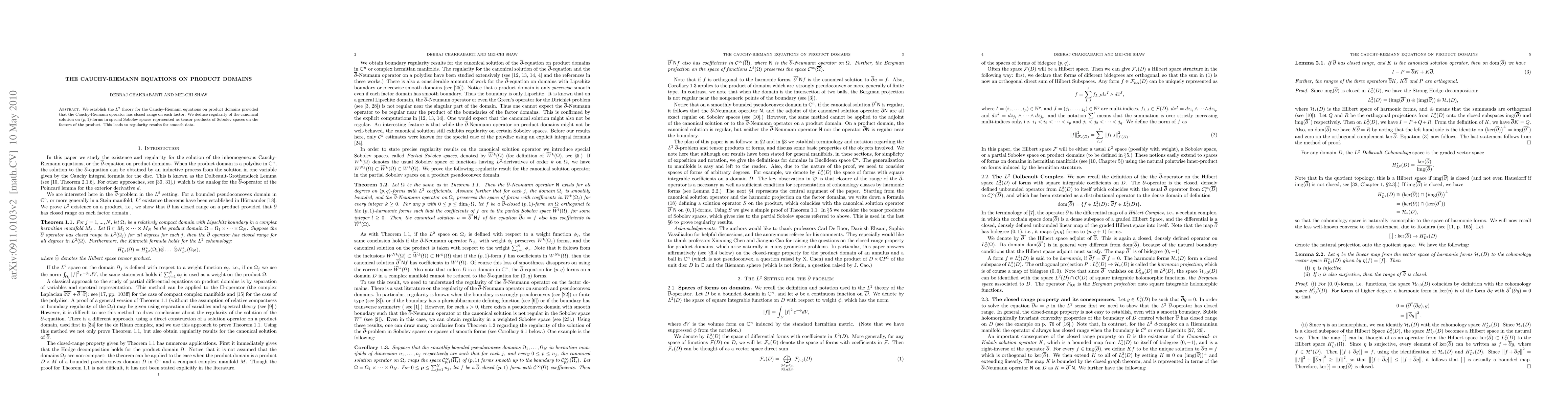 This paper develops the $L^2$ theory for the Cauchy-Riemann equations on product domains, proving regularity of solutions under the condition that the Cauchy-Riemann operator has closed range on each factor, and deriving results for $(p,1)$-forms in special Sobolev spaces.