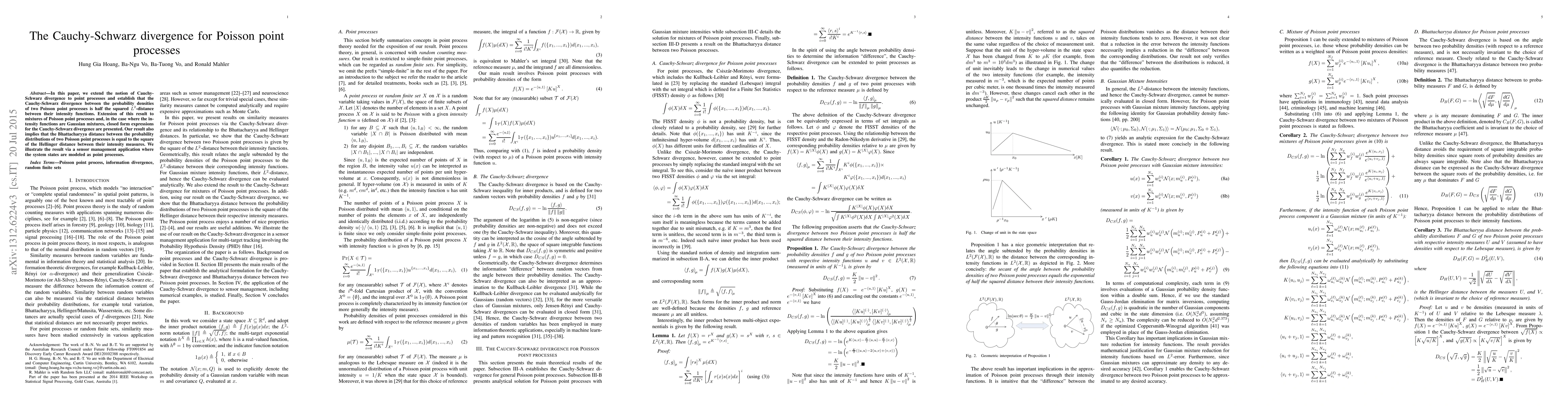 This paper extends the Cauchy-Schwarz divergence to Poisson point processes, showing it equals half the squared $\mathbf{L^{2}}$-distance between their intensity functions. It also provides closed-form expressions for mixtures of Poisson point processes and relates the Bhattacharyya distance to the Hellinger distance between their intensity measures.