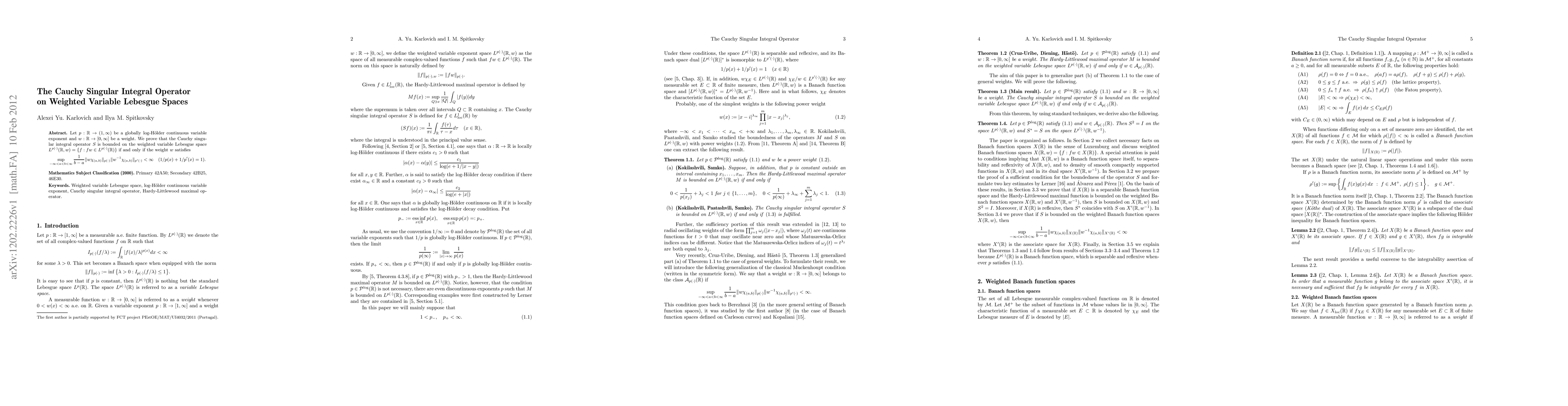 This paper proves that the Cauchy singular integral operator $S$ is bounded on the weighted variable Lebesgue space $L^{p(\cdot)}(\R,w)$ if and only if the weight $w$ satisfies a specific condition involving the variable exponent $p(\cdot)$ and its conjugate $p'(\cdot)$. The condition ensures the boundedness of $S$ in these spaces.