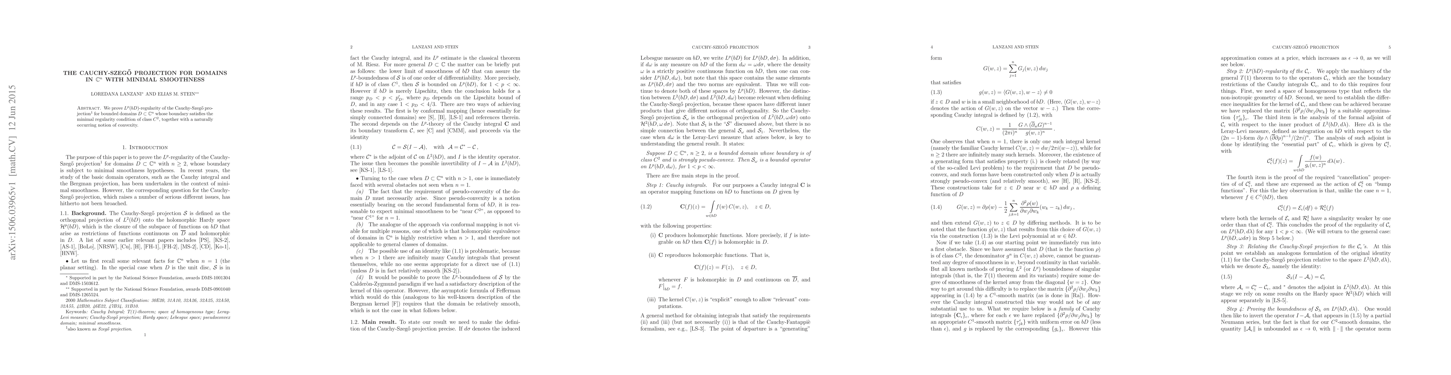 This paper proves $L^p(b D)$-regularity of the Cauchy-Szegő projection for bounded domains in $\mathbb C^n$ with $C^2$ boundary and a specific convexity condition, extending the applicability of the projection to domains with minimal smoothness.
