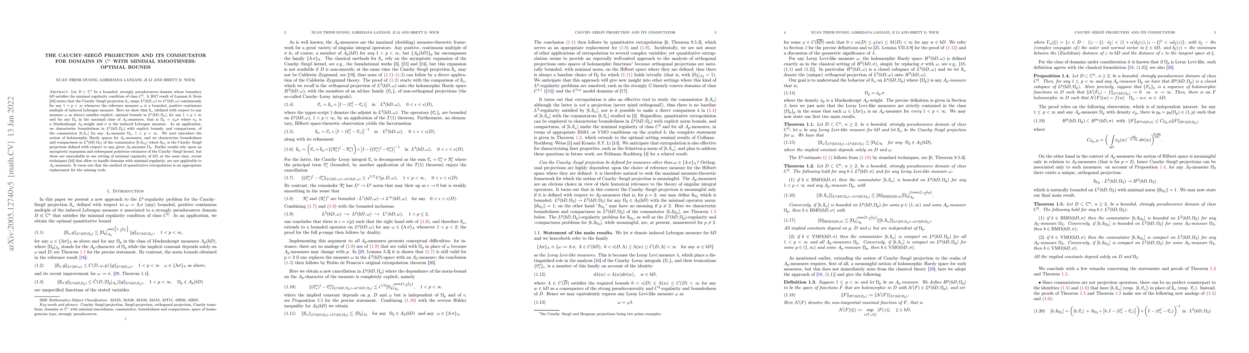 This paper investigates the Cauchy-Szegő projection $\mathcal{S}$ on bounded, strongly pseudoconvex domains $D \subset \mathbb{C}^n$ with minimal smoothness $C^2$ boundaries, providing optimal bounds for $\mathcal{S}_\omega$ in $L^p$ spaces. It also characterizes the boundedness and compactness of the commutator $[b, \mathcal{S}_\omega]$ for $A_p$-measures, employing quantitative extrapolation methods.
