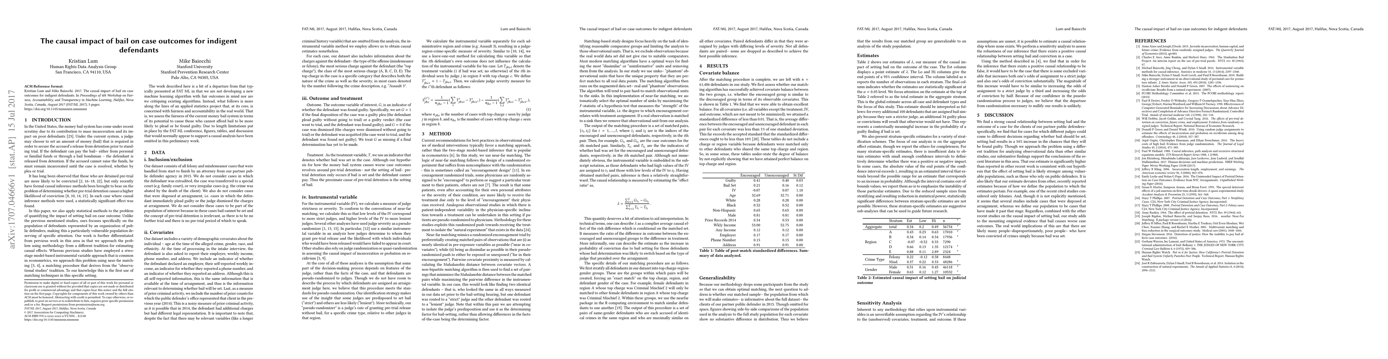 This study employs near-far matching to determine if bail increases the likelihood of conviction for indigent defendants, revealing a significant causal impact. The findings suggest that bail may influence case outcomes adversely for those unable to afford it.