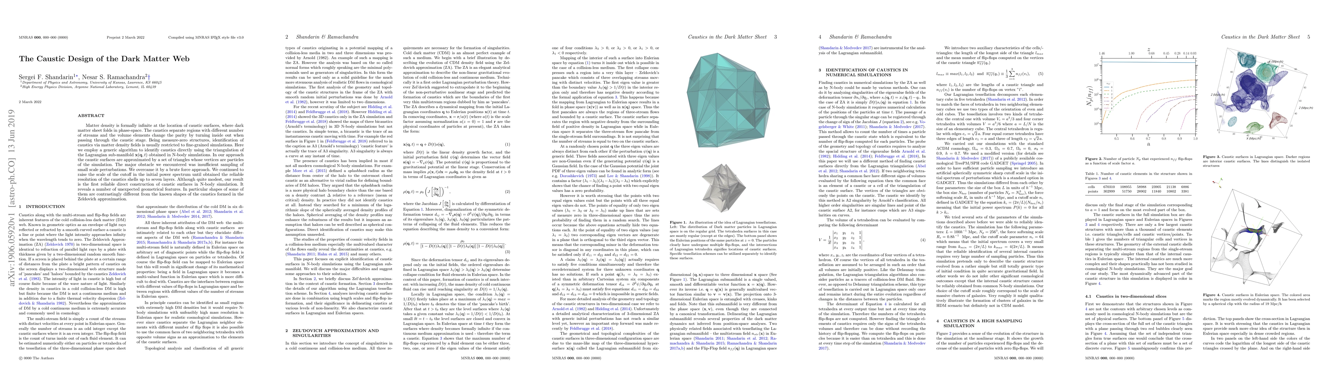 Matter density is formally infinite at the location of caustic surfaces, where dark matter sheet folds in phase-space. The caustics separate regions with different number of streams and the volume elements change the parity by turning inside out when passing through the caustic stage. Being measure-zero structures, identification of caustics via matter density fields is usually restricted to fine-grained simulations. Here we employ a generic algorithm to identify caustics directly using the triangulation of the Lagrangian sub-manifold x(q,t) obtained in N-body simulations. In our approach the caustic surfaces are approximated by a set of triangles whose vertices are particles of the simulation. The major obstacle we encountered was insufficient sampling of small scale perturbations. We overcame it by a brute force approach. We continued to raise the scale of the cutoff in the initial power spectrum until obtained the reliable resolution of the caustics shells up to seven layers. Although quite modest, our result is the first reliable direct construction of caustic surfaces in N-body simulation. It reveals a number of unexpected geometrical features. In particular shapes of some of them are contrastingly different from the known shapes of the caustics formed in the Zeldovich approximation.