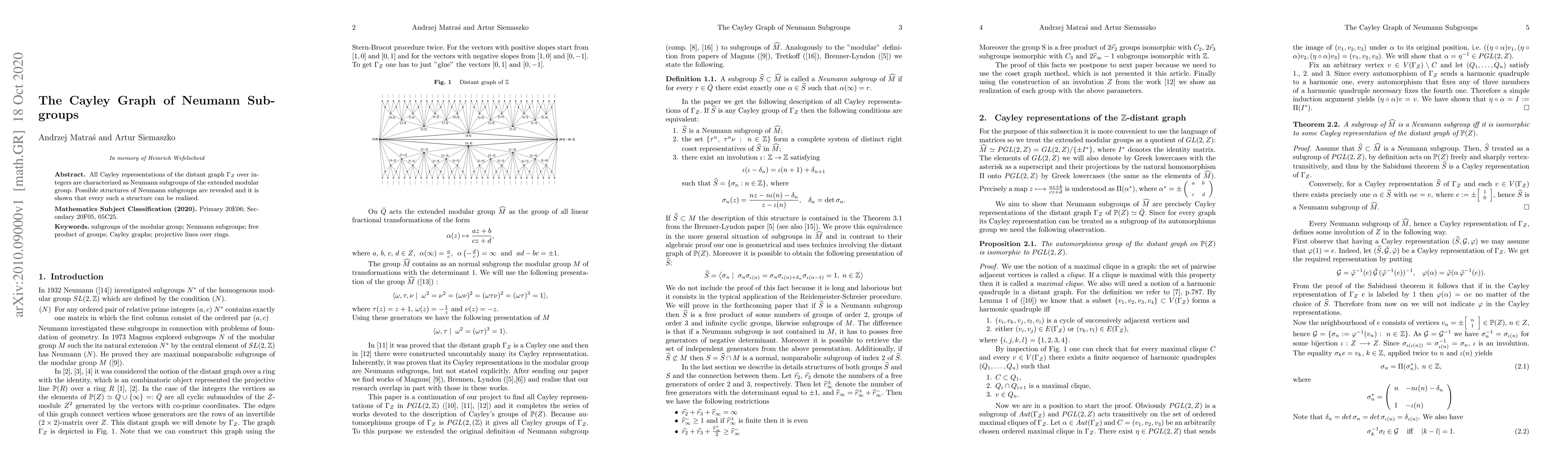 The paper shows that every Cayley representation of the distant graph over integers can be realized as a Neumann subgroup of the extended modular group, revealing possible structures of such subgroups.