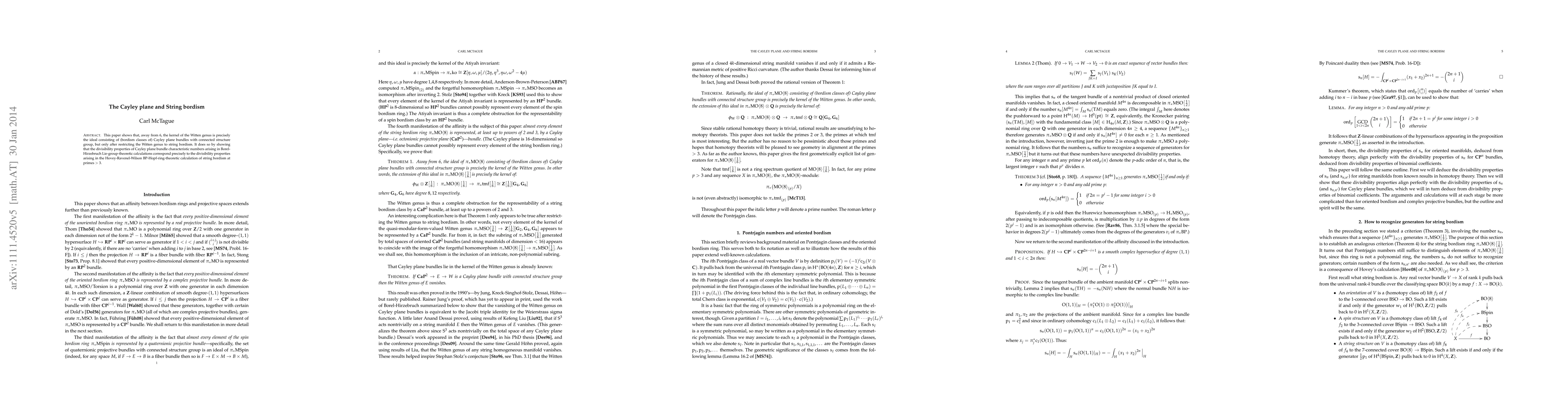 The paper employs advanced techniques in algebraic topology, specifically focusing on bordism theory and characteristic classes to analyze the Cayley plane and its relation to string bordism.