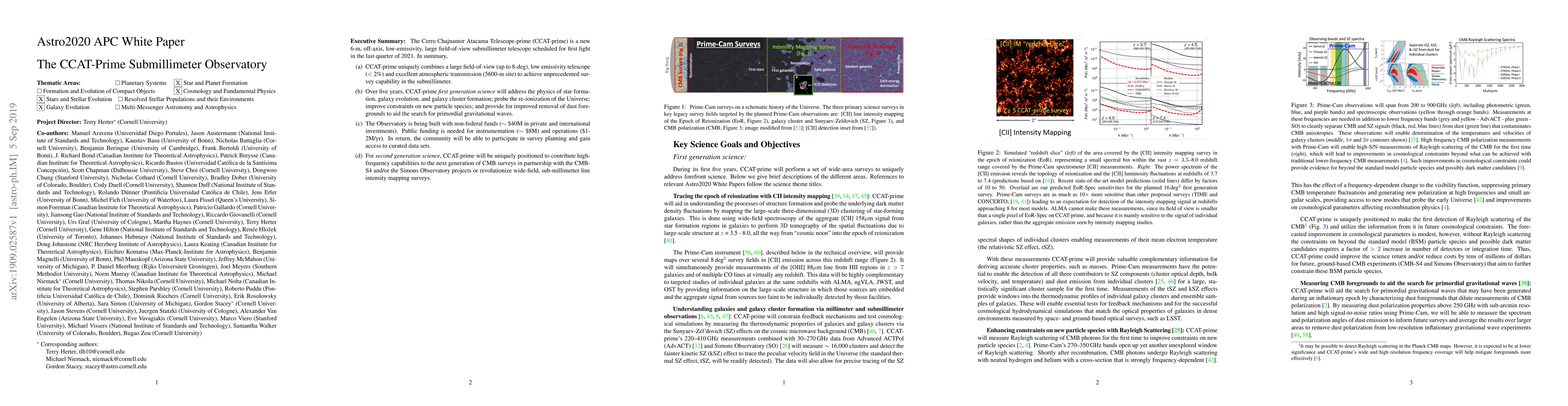 The research details the design and capabilities of the CCAT-Prime Submillimeter Observatory, a 6-meter off-axis telescope with a large field-of-view and low emissivity, aiming for first light in late 2021.