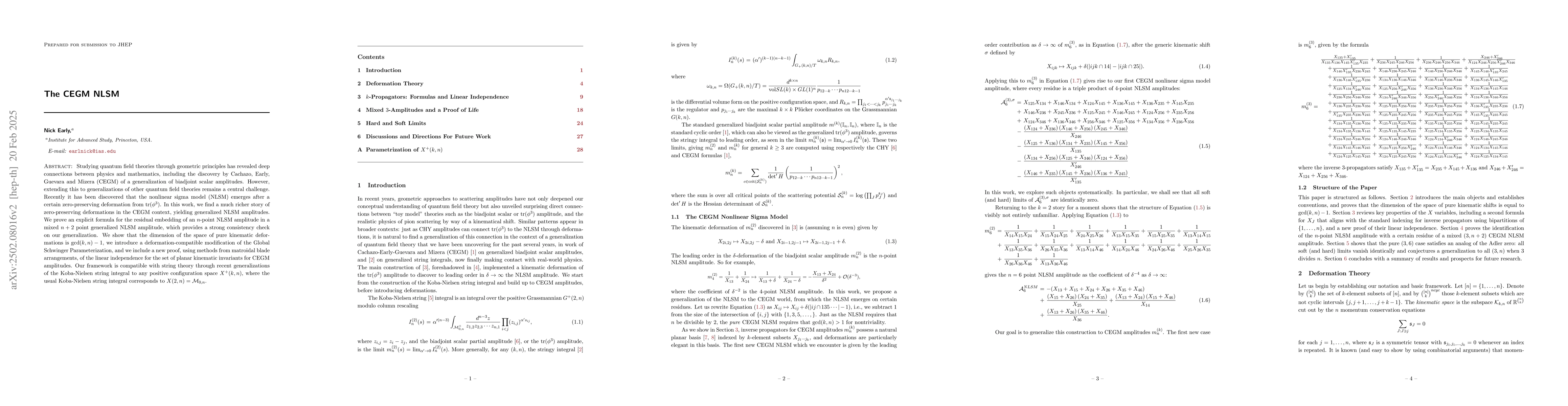 The paper introduces a systematic deformation theory for CEGM amplitudes, develops zero-preserving deformations to produce generalized NLSM amplitudes, and proves an explicit formula for the residual embedding of an n-point NLSM amplitude in a mixed n+2 point generalized NLSM amplitude.