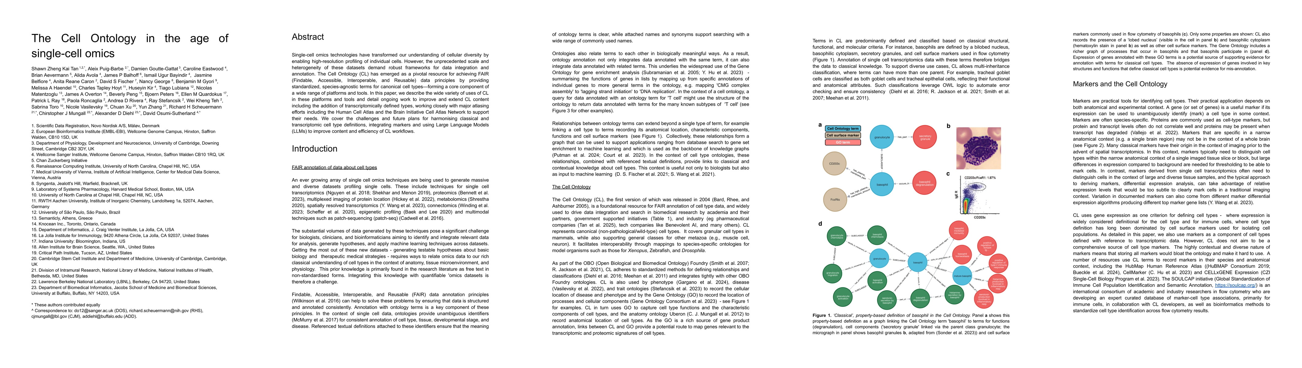 The Cell Ontology (CL) is a standardized framework for annotating individual cells in single-cell omics technologies, providing a crucial component for FAIR data principles. CL has been widely adopted across various platforms and tools, with ongoing efforts to improve and extend its content to address challenges in cell type definitions and marker integration.