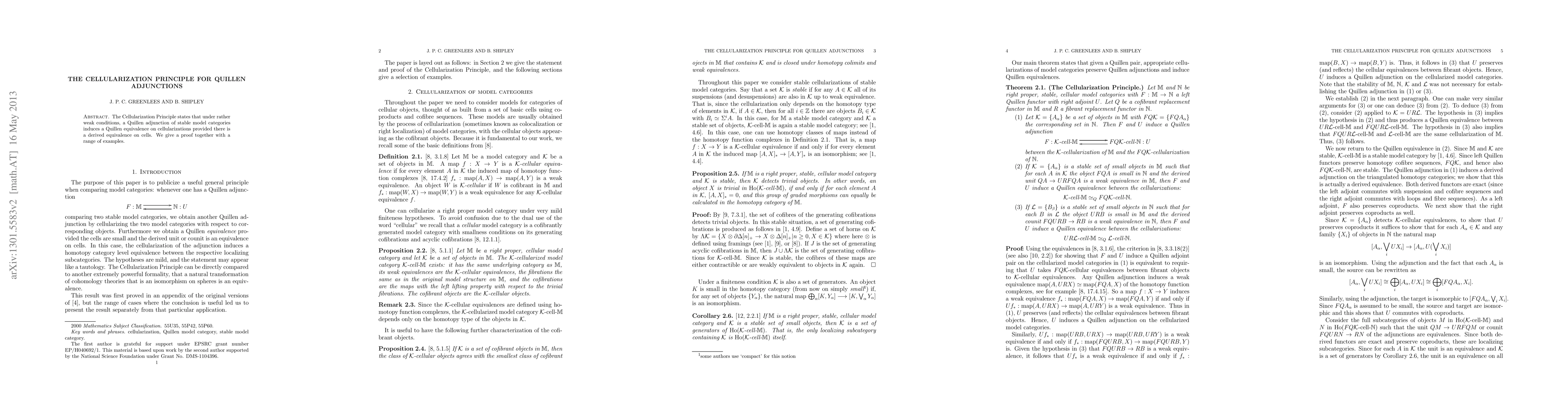 The Cellularization Principle states that under rather weak conditions a Quillen adjunction of stable model categories induces a Quillen equivalence on cellularizations provided there is a derived equivalence on cells. We give a proof together with a range of examples. The main result here was originally presented as an appendix of arXiv:1101.2511. However, the Cellularization Principle has many other applications which are explored here. The material in arXiv:1101.2511v3 will be revised to refer to this paper.