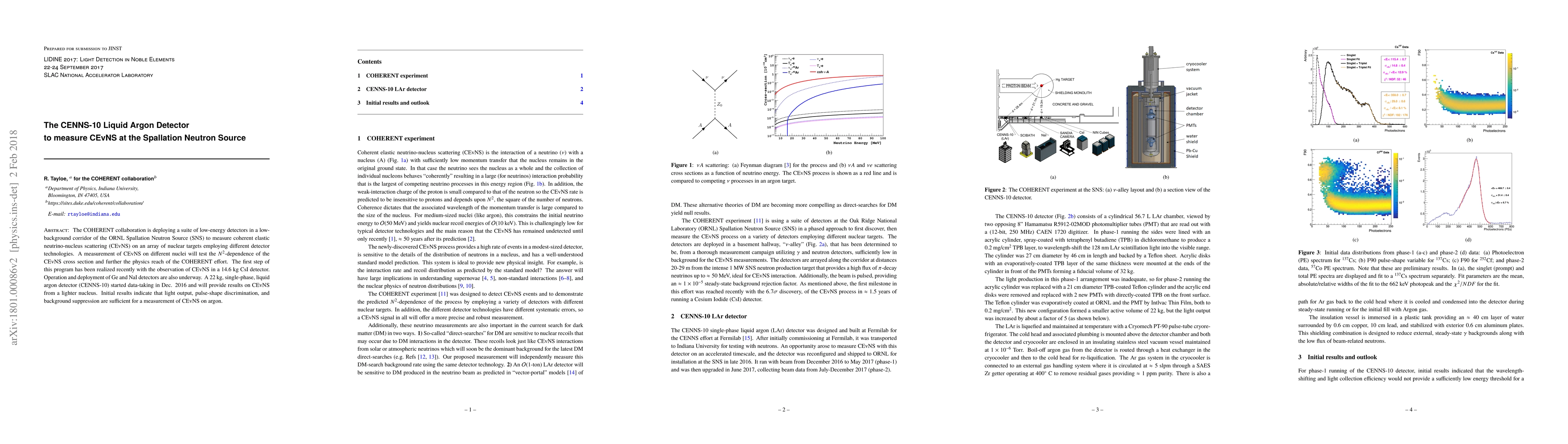 The CENNS-10 liquid argon detector at the Spallation Neutron Source aims to measure coherent elastic neutrino-nucleus scattering (CEvNS) using different detector technologies. Initial results show promising light output, pulse-shape discrimination, and background suppression for CEvNS measurements on argon.