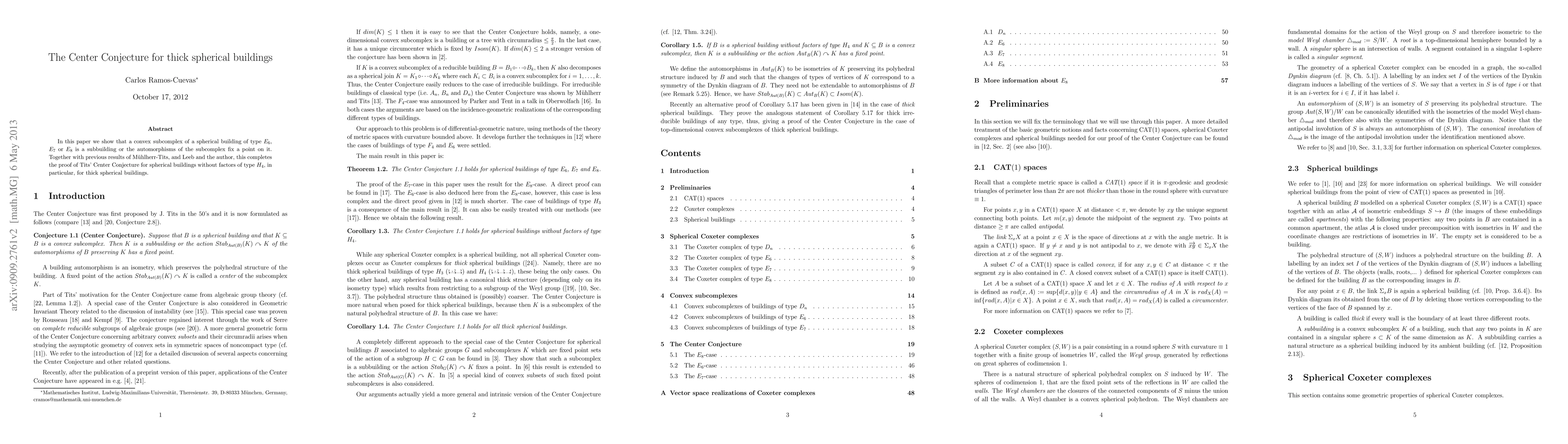 This paper proves that any convex subcomplex in a spherical building of type E6, E7, or E8 is either a subbuilding or has a fixed point under automorphisms, completing the proof of Tits' Center Conjecture for thick spherical buildings without H4 factors.