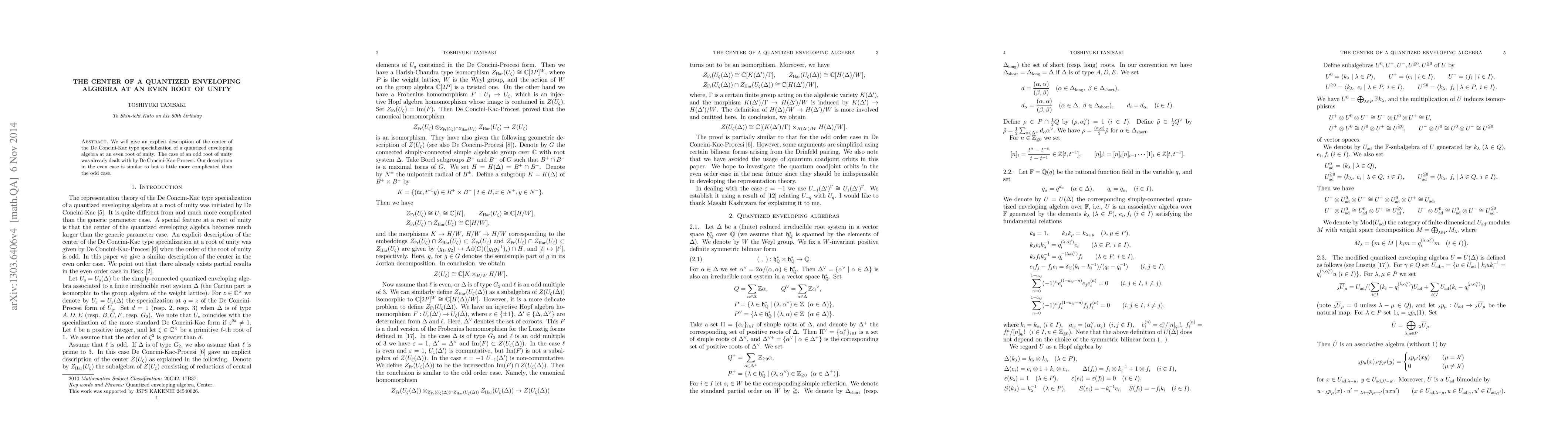 Researchers describe the center of a quantized enveloping algebra at an even root of unity, extending previous work on odd roots of unity.