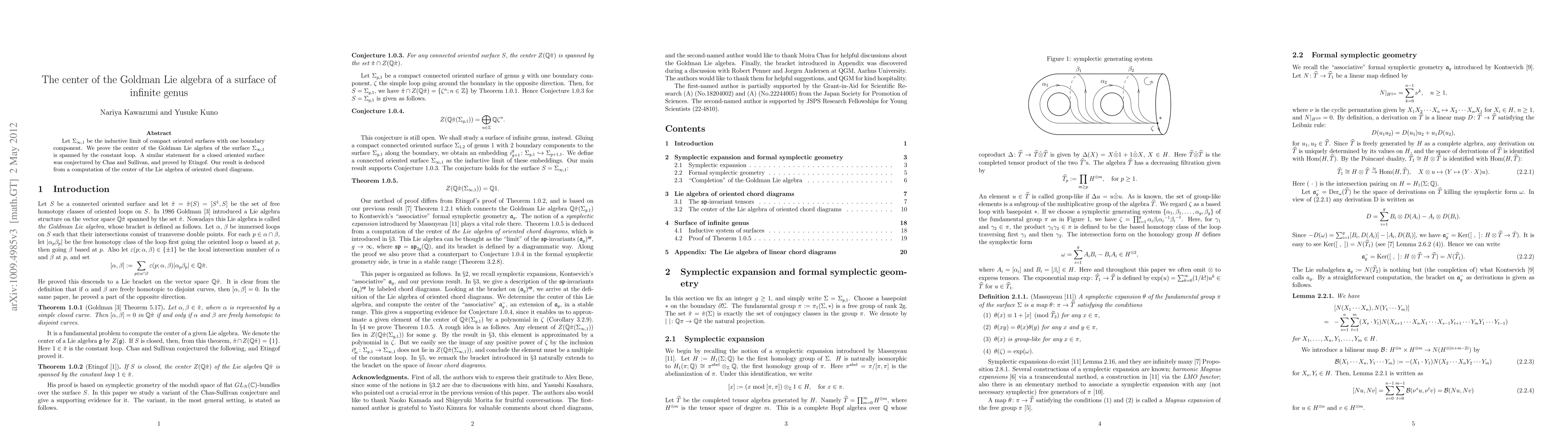 The research paper proves that the center of the Goldman Lie algebra of a surface with infinite genus is spanned by a constant loop, extending previous results on closed surfaces.