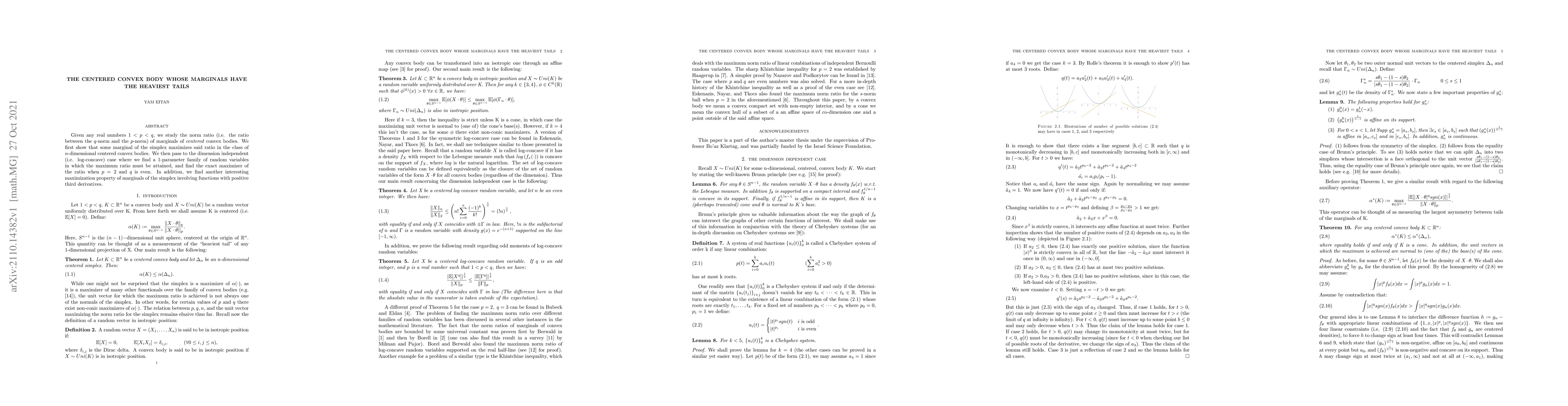 A combination of theoretical analysis and numerical simulations were used to investigate the properties of centered convex bodies.