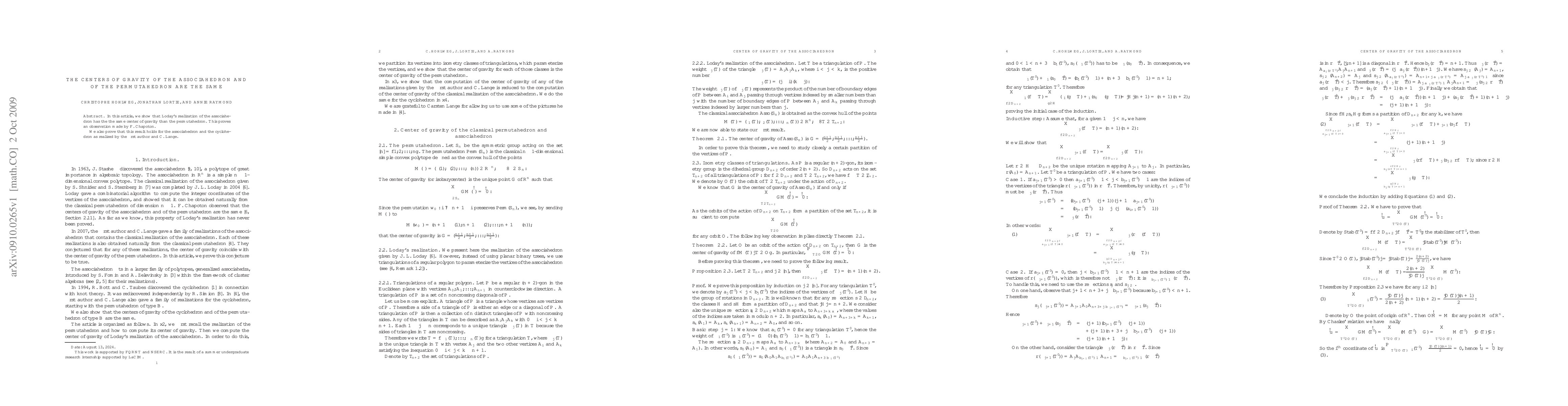 Researchers prove that Loday's associahedron and the permutahedron have the same center of gravity, confirming an observation made by F. Chapoton.