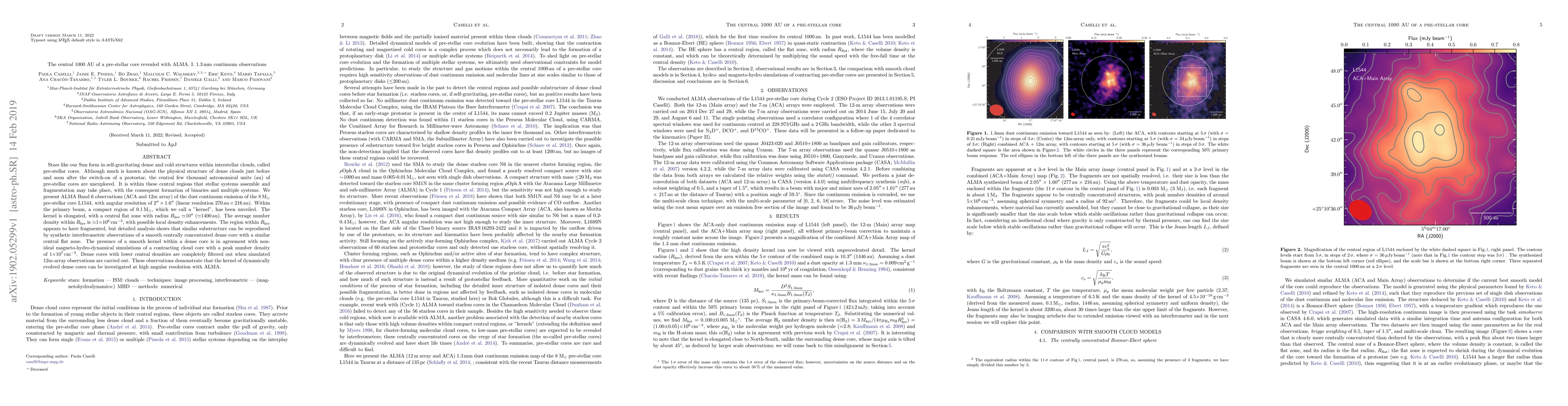 Stars like our Sun form in self-gravitating dense and cold structures within interstellar clouds, called pre-stellar cores. Although much is known about the physical structure of dense clouds just before and soon after the switch-on of a protostar, the central few thousand astronomical units (au) of pre-stellar cores are unexplored. It is within these central regions that stellar systems assemble and fragmentation may take place, with the consequent formation of binaries and multiple systems. We present ALMA Band 6 observations (ACA and 12m array) of the dust continuum emission of the 8 Msun pre-stellar core L1544, with angular resolution of 2'' x 1.6'' (linear resolution 270 au x 216 au). Within the primary beam, a compact region of 0.1 Msun, which we call a "kernel", has been unveiled. The kernel is elongated, with a central flat zone with radius Rker ~ 10'' (~ 1400 au). The average number density within Rker is ~1 x 10^6 cm^{-3}, with possible local density enhancements. The region within Rker appears to have fragmented, but detailed analysis shows that similar substructure can be reproduced by synthetic interferometric observations of a smooth centrally concentrated dense core with a similar central flat zone. The presence of a smooth kernel within a dense core is in agreement with non-ideal magneto-hydro-dynamical simulations of a contracting cloud core with a peak number density of 1 x 10^7 cm^{-3}. Dense cores with lower central densities are completely filtered out when simulated 12m-array observations are carried out. These observations demonstrate that the kernel of dynamically evolved dense cores can be investigated at high angular resolution with ALMA.