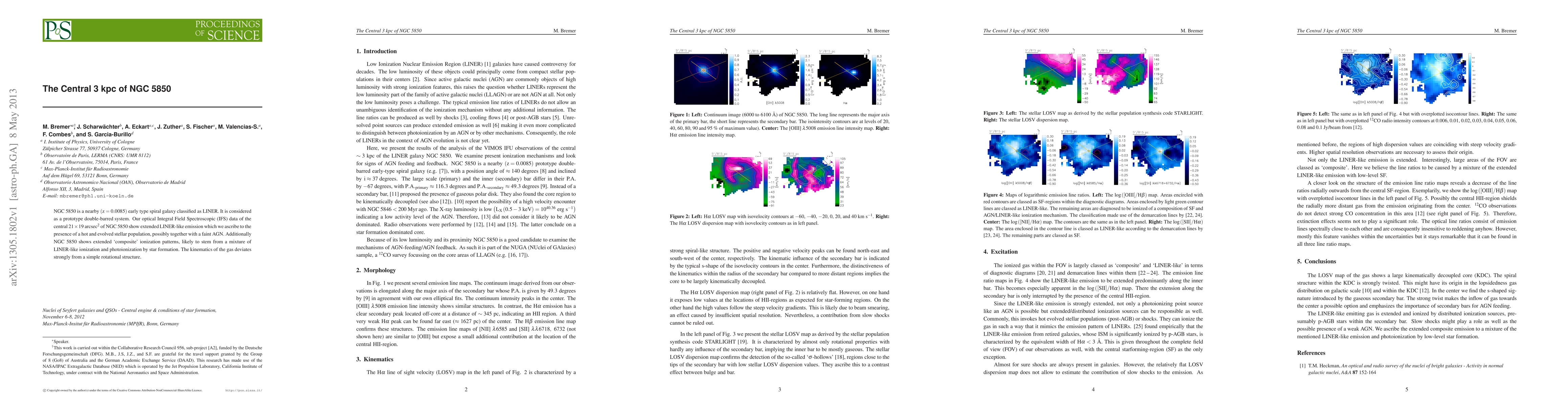 NGC 5850 is a nearby (z=0.0085) early type spiral galaxy classified as LINER. It is considered as a prototype double-barred system. Our optical Integral Field Spectroscopic (IFS) data of the central 21x19 arcsec^2 of NGC 5850 show extended LINER-like emission which we ascribe to the presence of a hot and evolved stellar population, possibly together with a faint AGN. Additionally NGC 5850 shows extended `composite' ionization patterns, likely to stem from a mixture of LINER-like ionization and photoionization by star formation. The kinematics of the gas deviates strongly from a simple rotational structure.