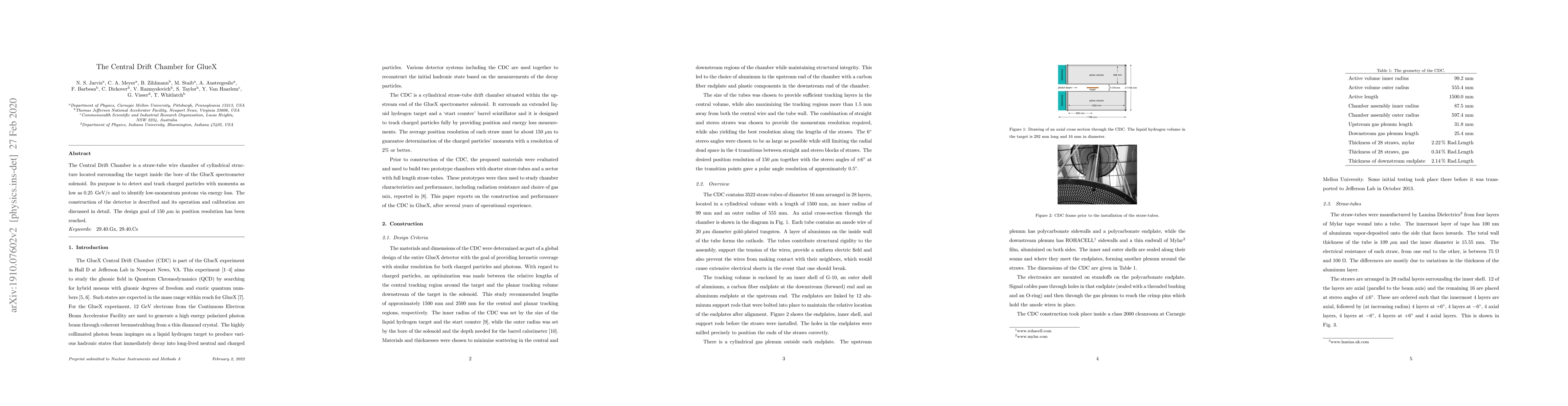 The Central Drift Chamber in the GlueX spectrometer successfully detects charged particles with momenta as low as 0.25 GeV/c and achieves a position resolution goal of 150 microns.