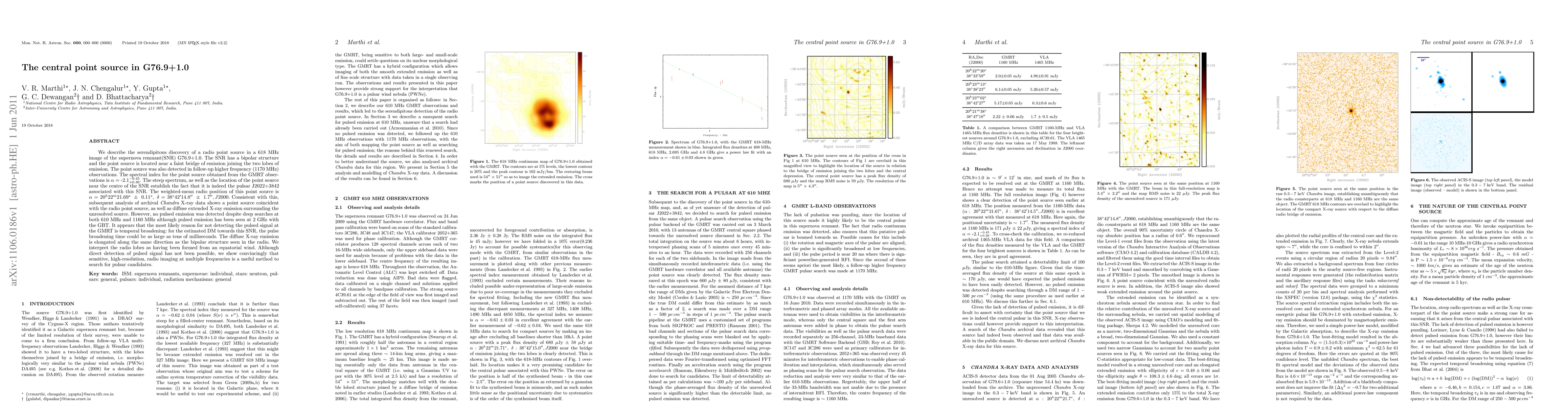 This paper reports the discovery of a radio point source in the supernova remnant G76.9+1.0, identified as the pulsar J2022+3842, based on its spectral index and location. Despite no detection of pulsed emission at certain frequencies, the study highlights the utility of multi-frequency radio imaging for pulsar searches.