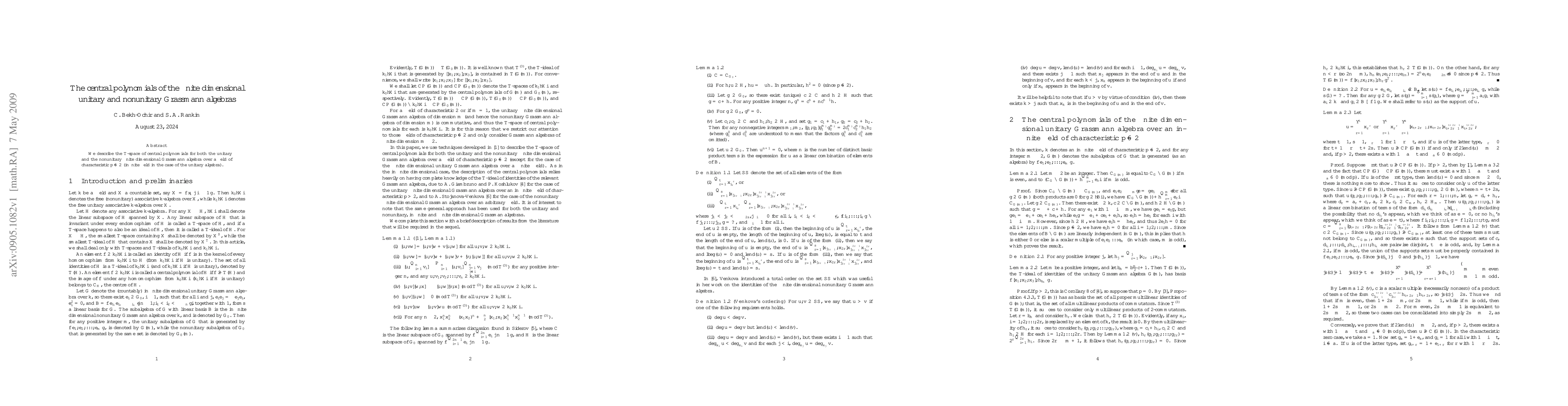 This research paper describes the central polynomials of finite-dimensional unitary and nonunitary Grassmann algebras over fields with characteristic not equal to 2, shedding light on their T-space properties.