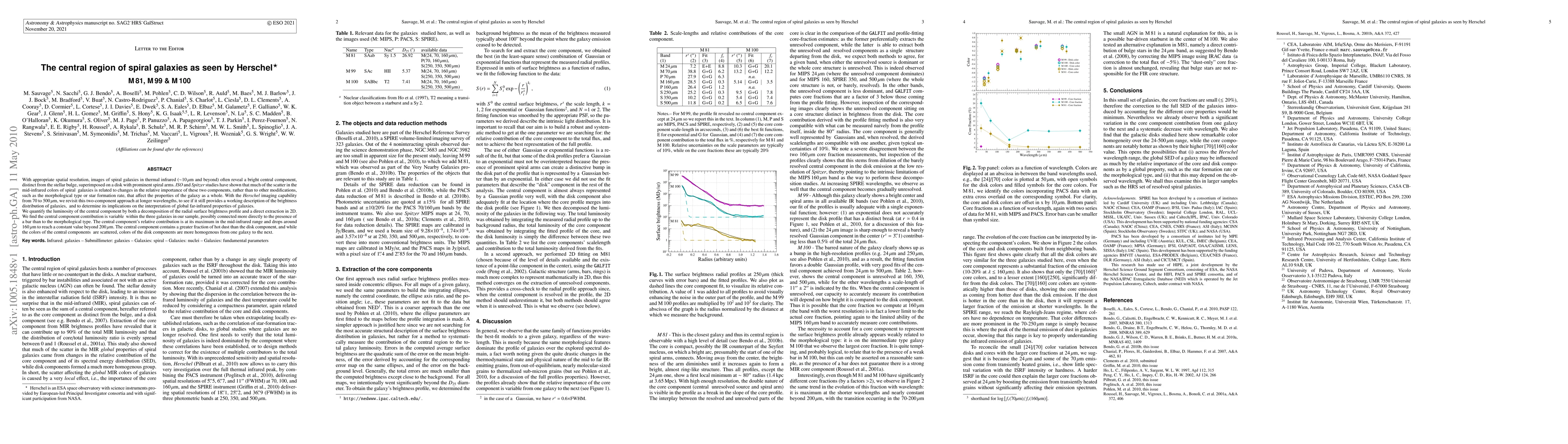 With appropriate spatial resolution, images of spiral galaxies in thermal infrared (~10 micron and beyond) often reveal a bright central component, distinct from the stellar bulge, superimposed on a disk with prominent spiral arms. ISO and Spitzer studies have shown that much of the scatter in the mid-infrared colors of spiral galaxies is related to changes in the relative importance of these two components, rather than to other modifications, such as the morphological type or star formation rate, that affect the properties of the galaxy as a whole. With the Herschel imaging capability from 70 to 500 micron, we revisit this two-component approach at longer wavelengths, to see if it still provides a working description of the brightness distribution of galaxies, and to determine its implications on the interpretation of global far-infrared properties of galaxies.