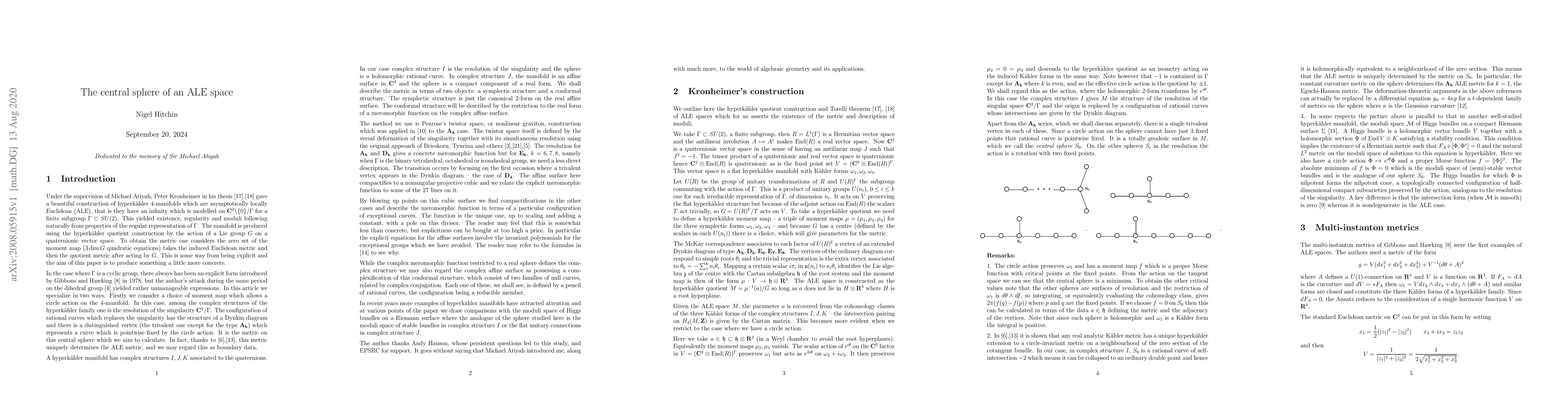 This paper investigates the spherical fixed point set of a circle action on an ALE space with Kronheimer's hyperkaehler metric, utilizing algebraic geometry of rational curves, especially lines on cubic surfaces, to describe the induced metric on the sphere.